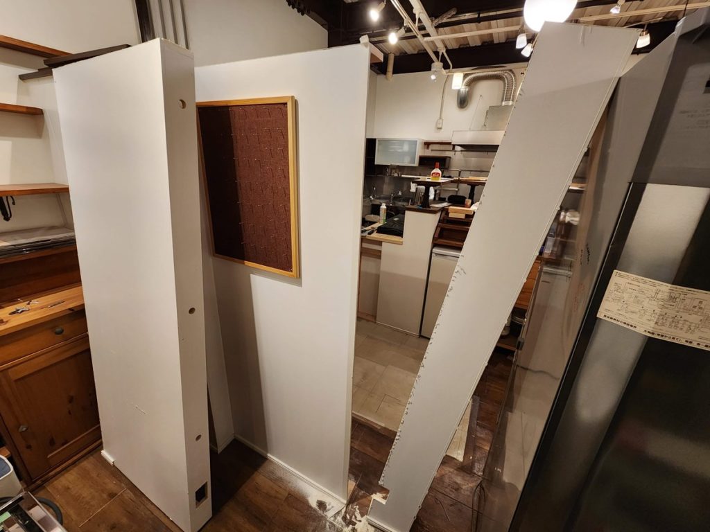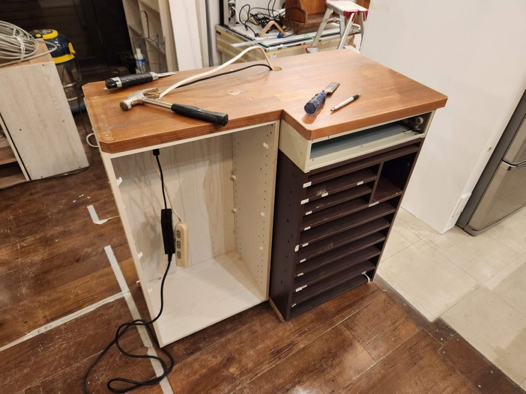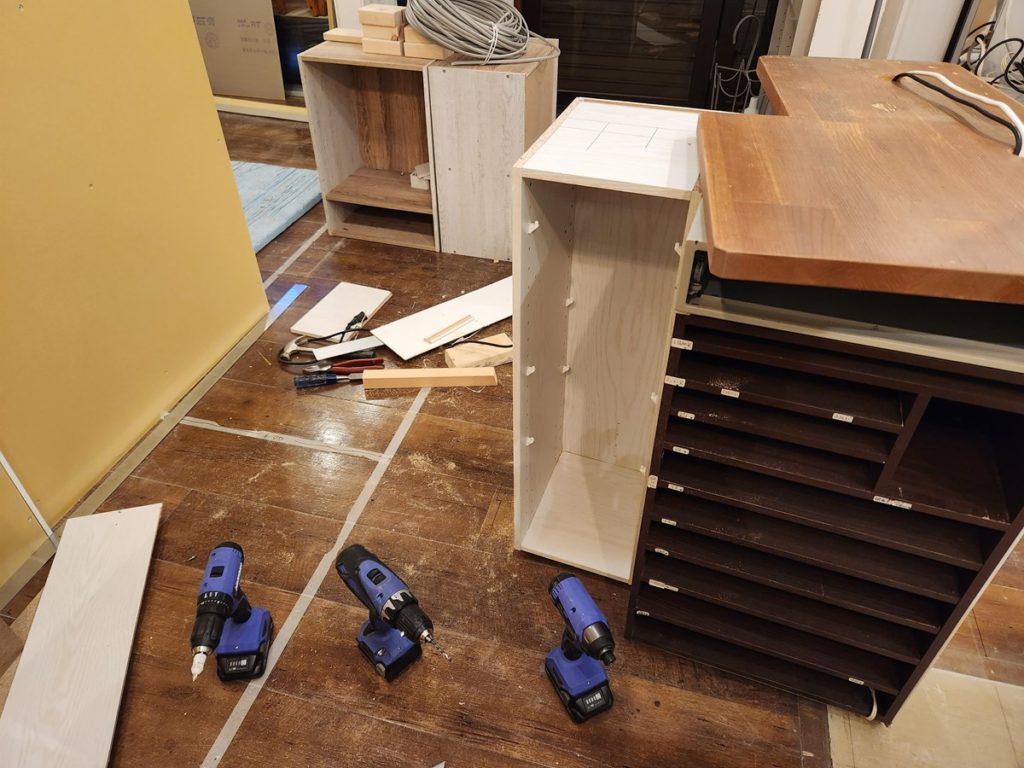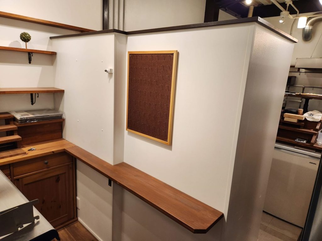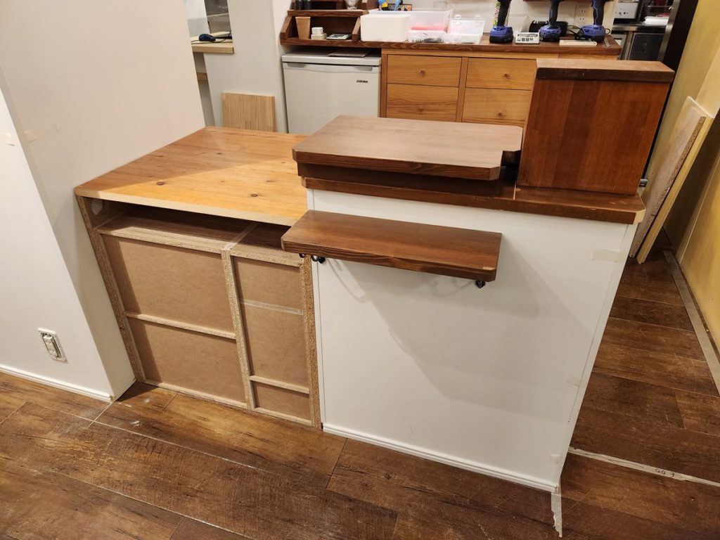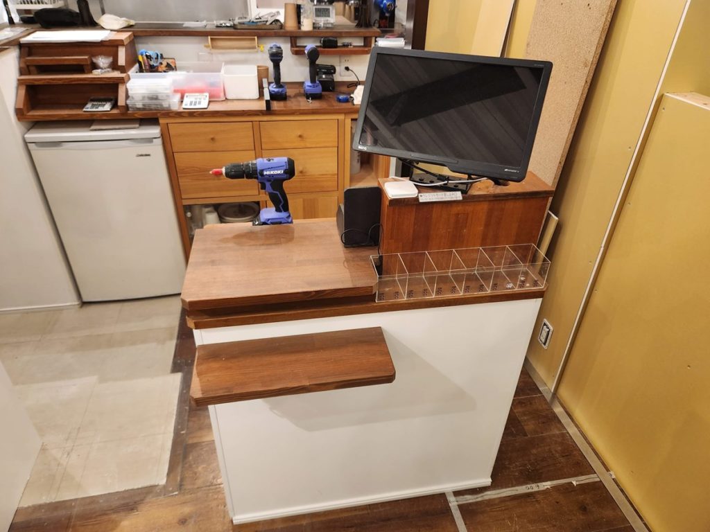 壁を20cm短くしたのに合わせて、レジ台も20cm短くリメイクします。