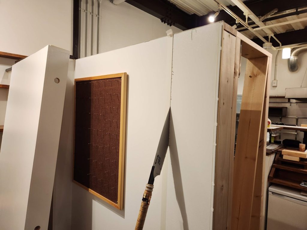 枠に合わせて石膏ボードと合板を組み合わせて仕上げていきます。