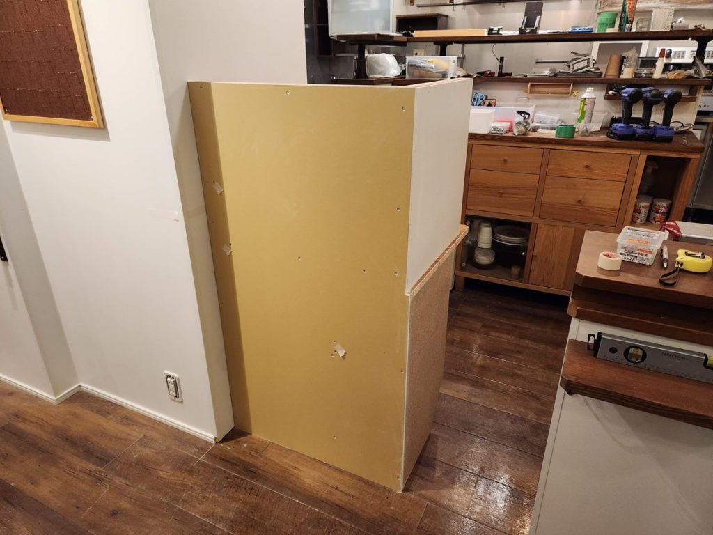 3段ボックスと天板を加工して土台を作ります。