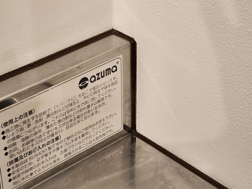 入手した一槽シンクを予定の位置に設置して、必要な箇所をコーキングで防水施工します。