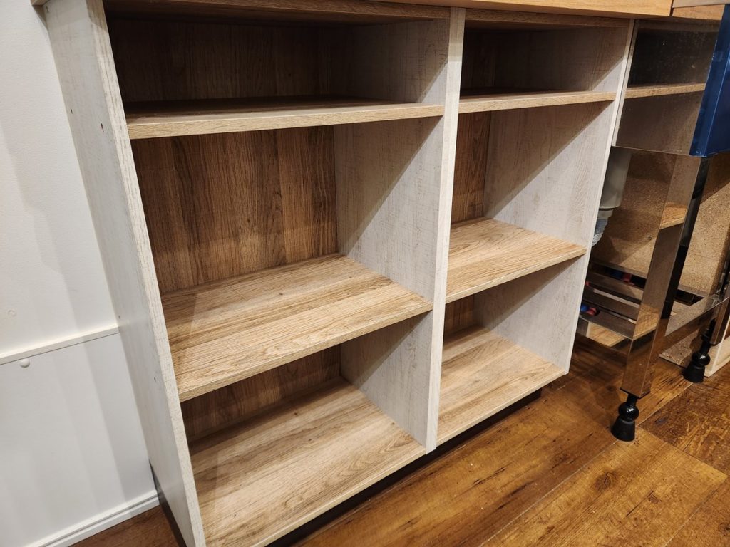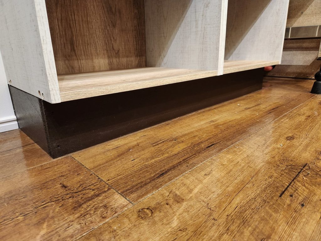 ひと手間は面倒ですが、つま先スペースの確保と床からの嵩上げ施工を行いました。